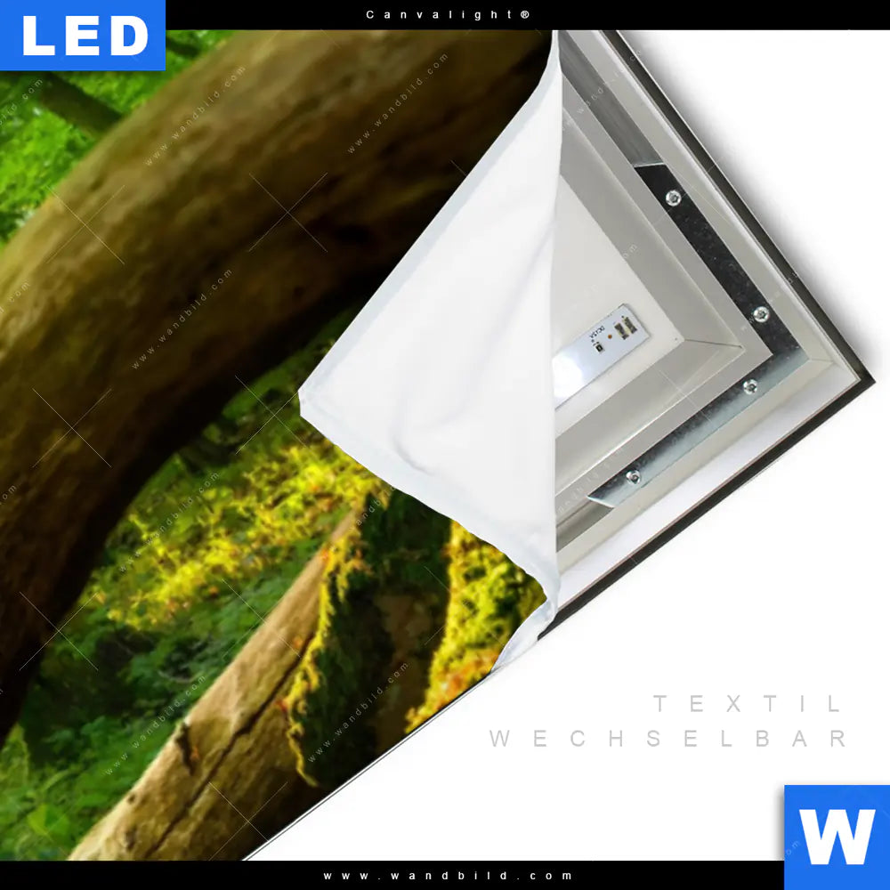 LED-Textilrahmen-Bild mit austauschbarem Landschaften, Wald - Bäume Textil-Druck (Wechselbild)