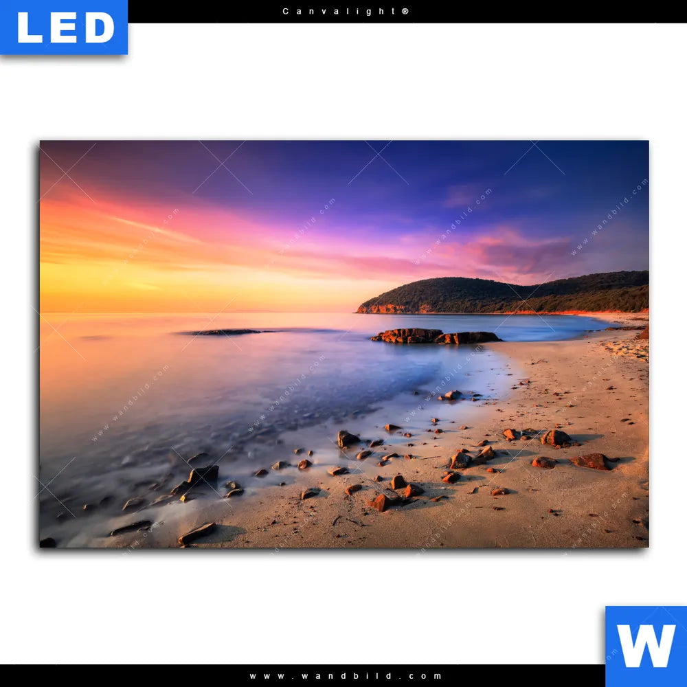 Canvalight® Leuchtbild | Sonnenuntergang in Bucht | Querformat
