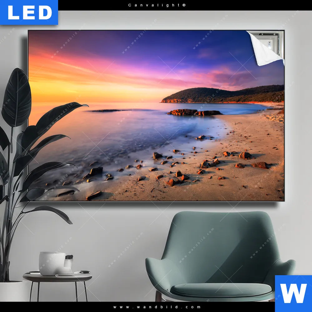 Canvalight® TEX Leuchtbild | Sonnenuntergang in Bucht | Querformat