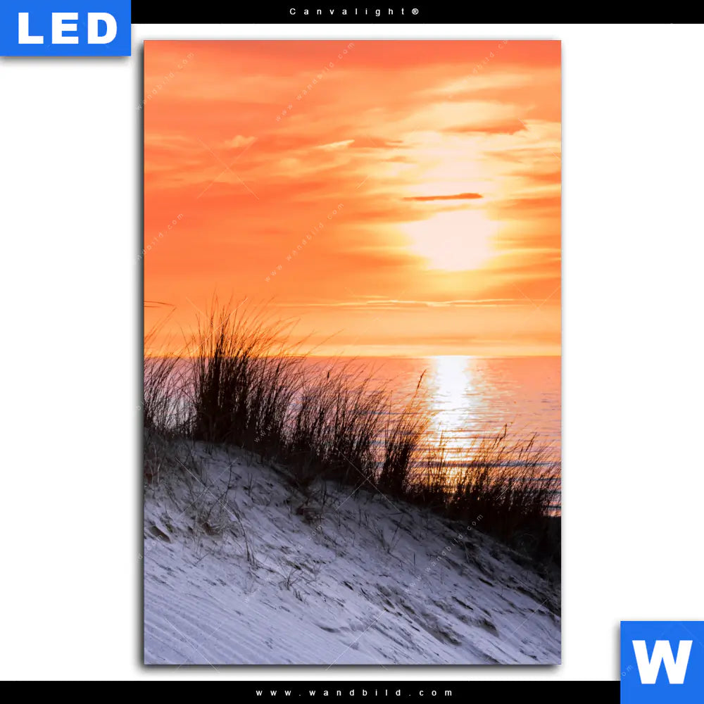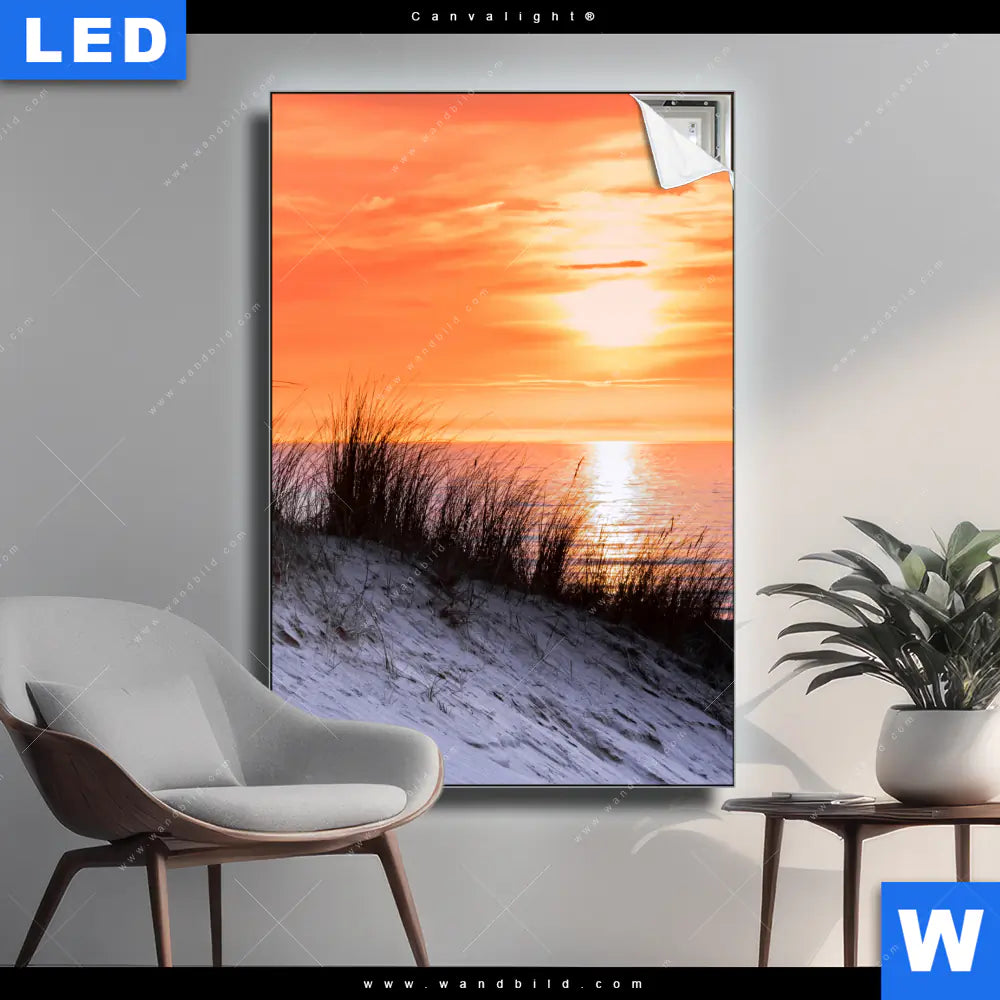 Canvalight® Leuchtbild | Sonnenuntergang mit Düne und Meer | Hochformat