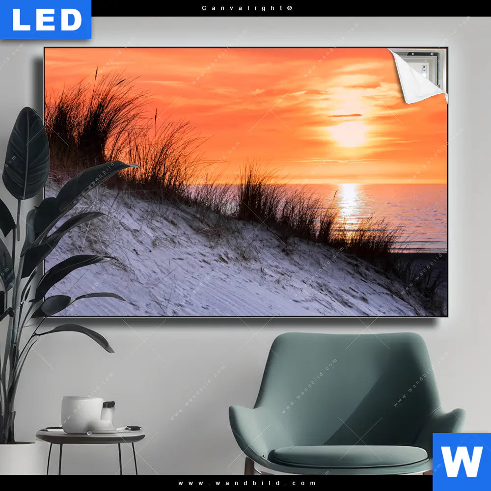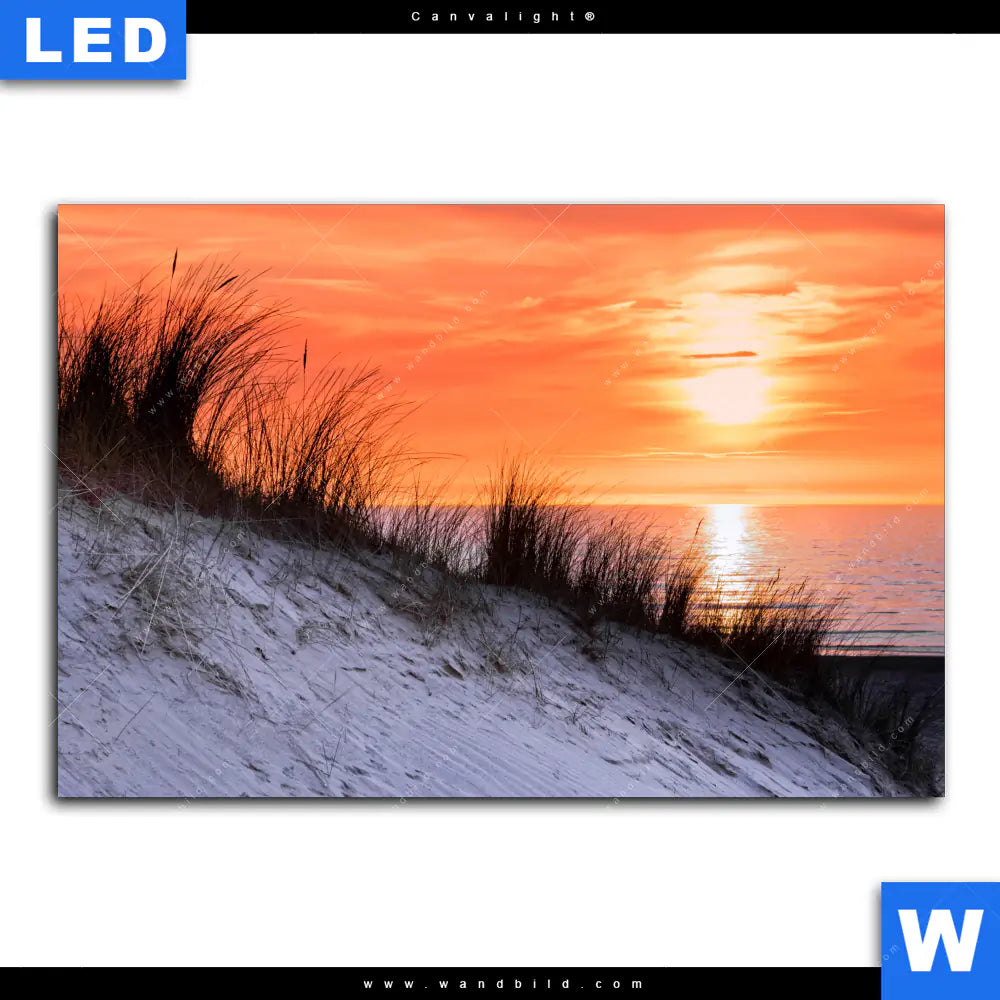 Canvalight® TEX Leuchtbild | Sonnenuntergang mit Düne und Meer | Querformat