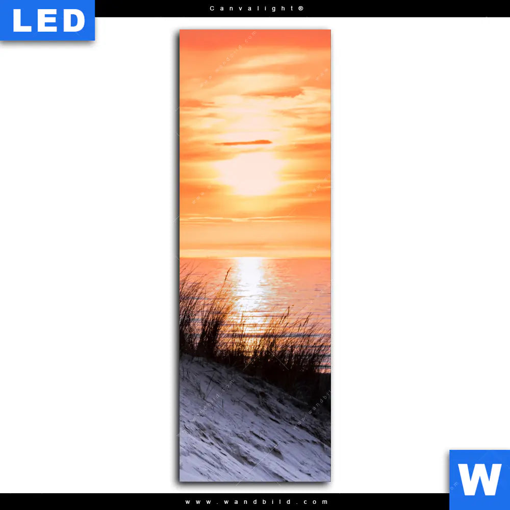 Canvalight® Leuchtbild | Sonnenuntergang mit Düne und Meer | Schmal