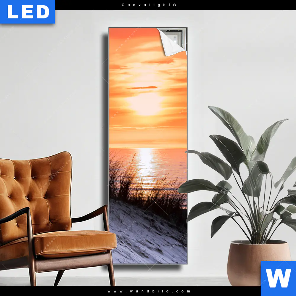 Canvalight® TEX Leuchtbild | Sonnenuntergang mit Düne und Meer | Schmal