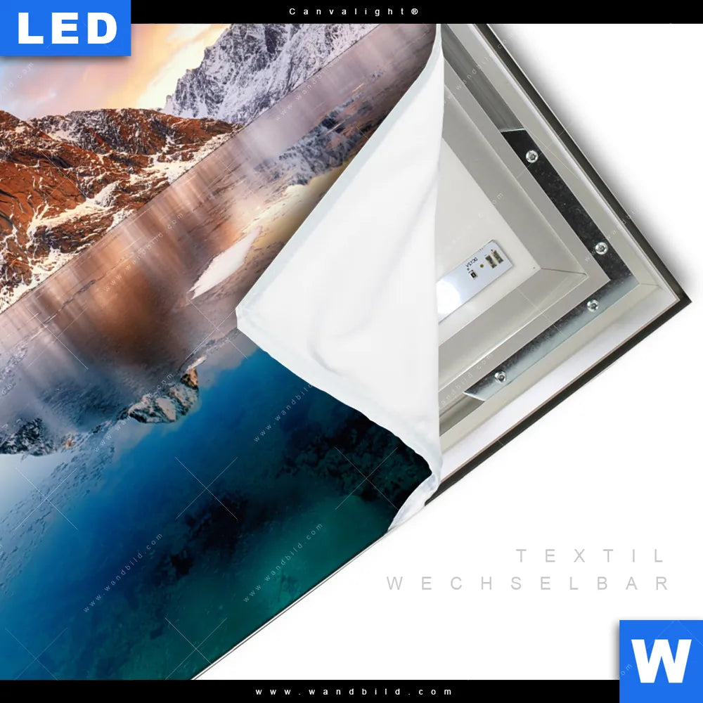 LED-Textilrahmen-Bild mit austauschbarem Landschaften Textil-Druck (Wechselbild)
