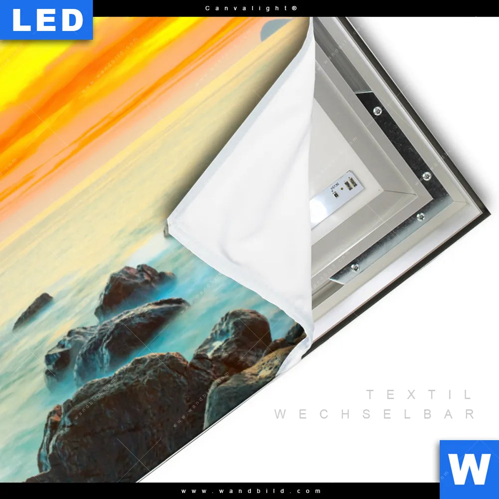 LED-Textilrahmen-Bild mit austauschbarem Landschaften, Strand - Meer Textil-Druck (Wechselbild)