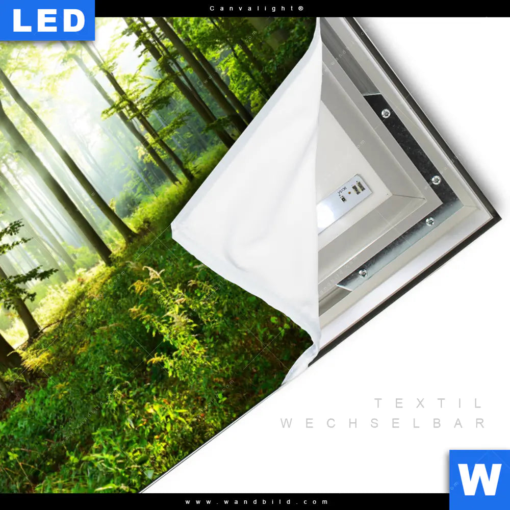 LED-Textilrahmen-Bild mit austauschbarem Landschaften, Wald - Bäume Textil-Druck (Wechselbild)