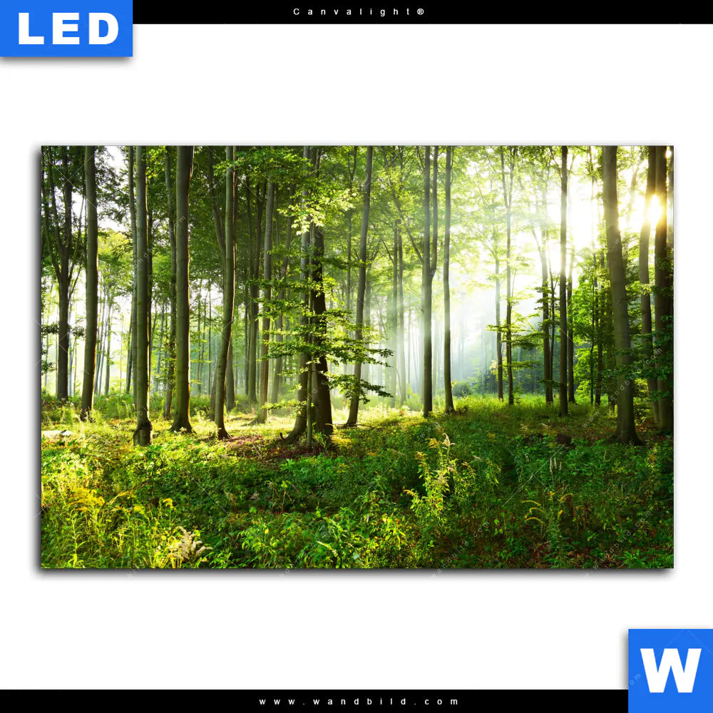 Canvalight® Leuchtbild | Sonniger Morgen im Wald | Querformat
