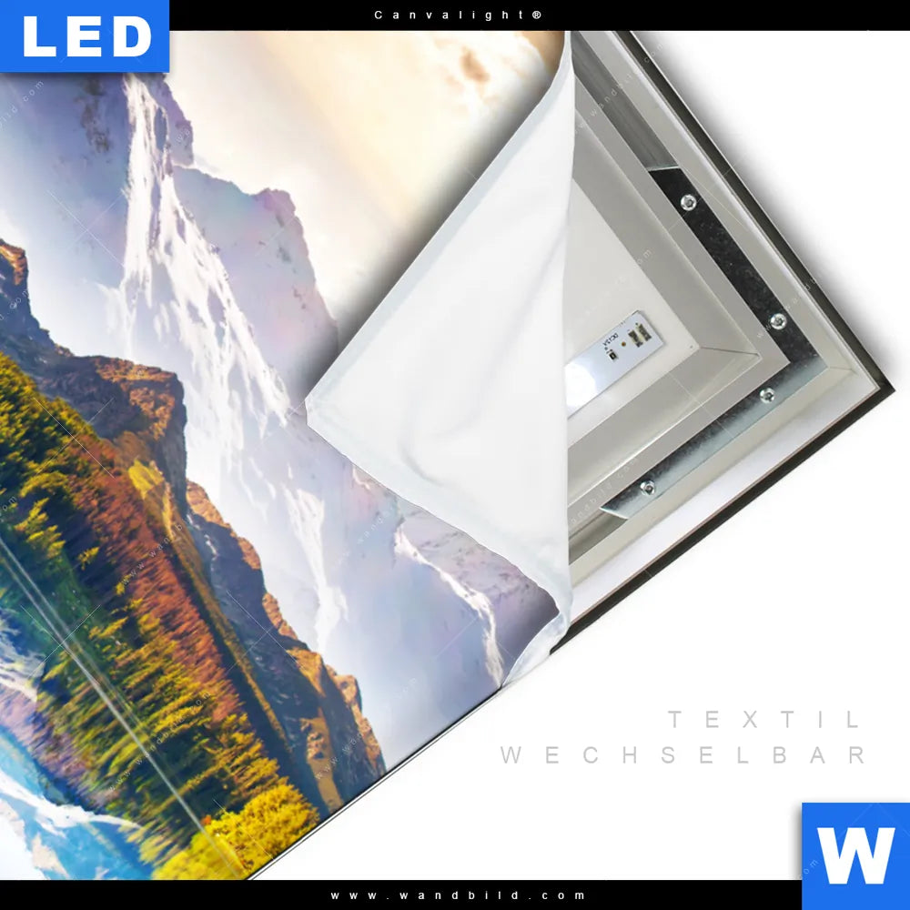 LED-Textilrahmen-Bild mit austauschbarem Landschaften Textil-Druck (Wechselbild)