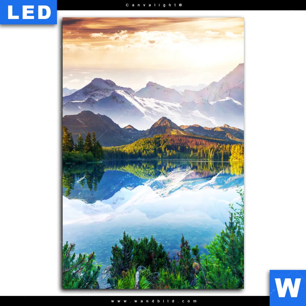 Canvalight® Leuchtbild | Sonniger Tag am Bergsee | Hochformat