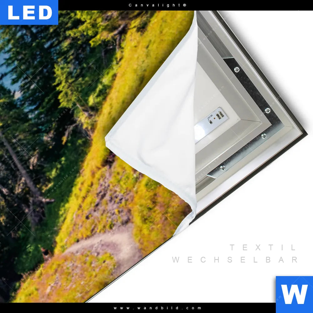 LED-Textilrahmen-Bild mit austauschbarem Landschaften Textil-Druck (Wechselbild)