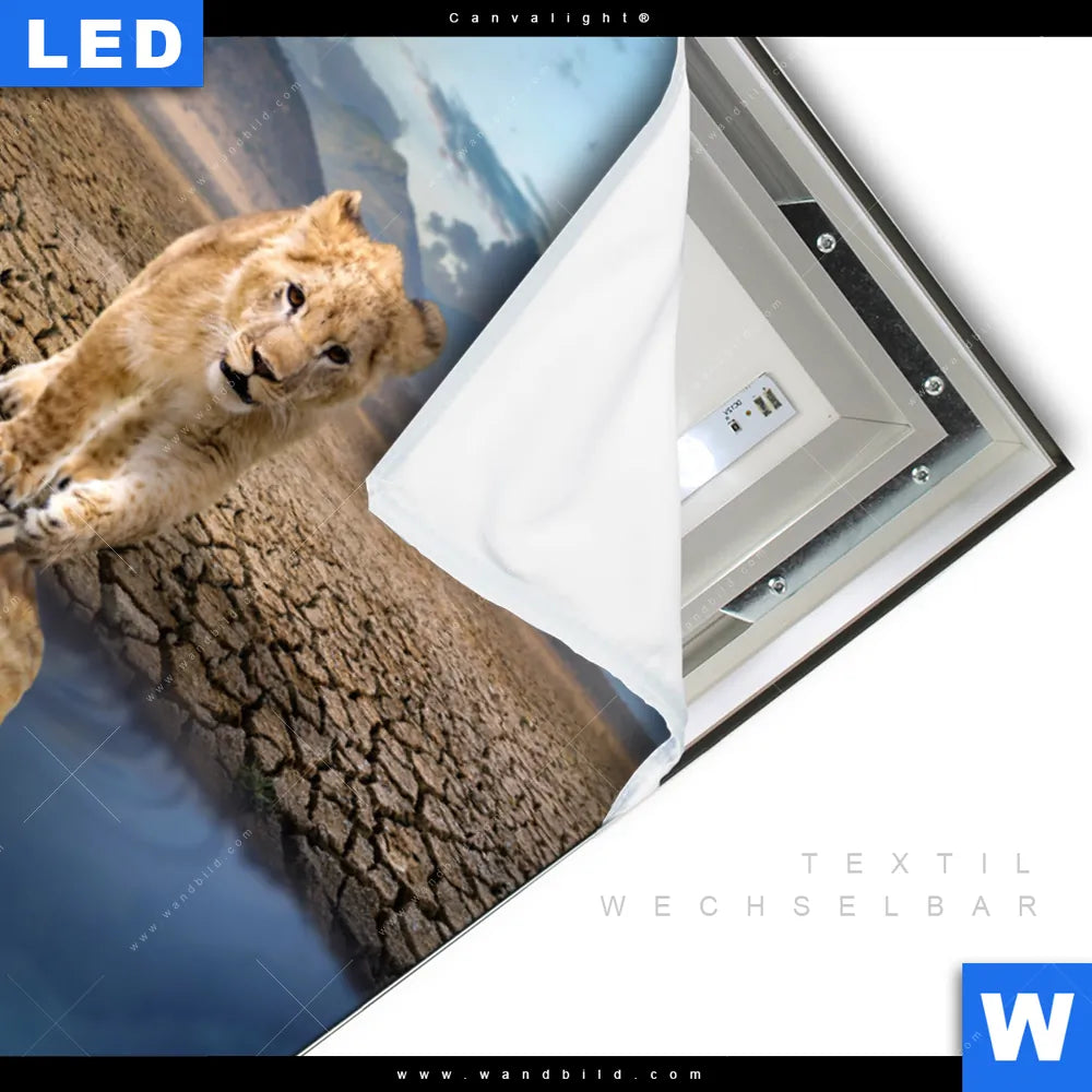 LED-Textilrahmen-Bild mit austauschbarem Tierwelt Textil-Druck (Wechselbild)