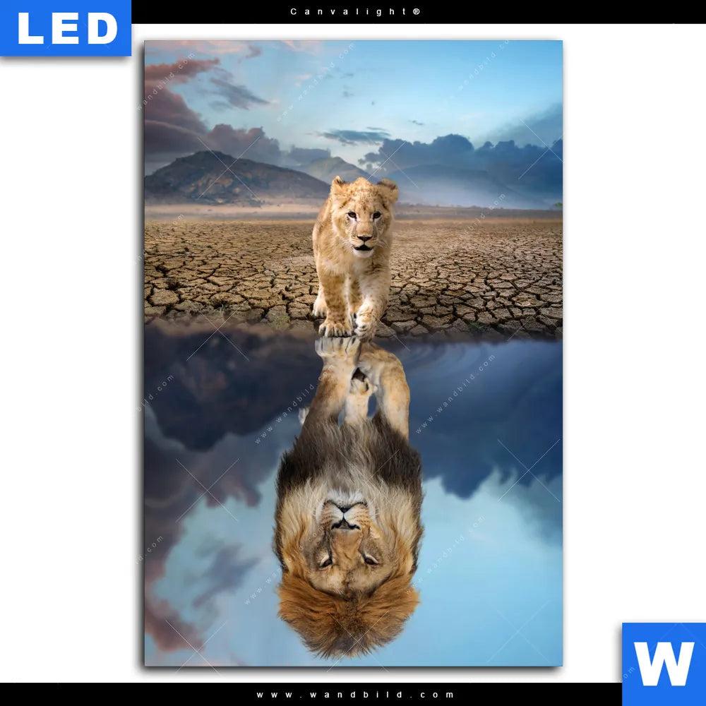 Canvalight® Leuchtbild | Spiegelbild Löwe & Löwenjunges | Hochformat