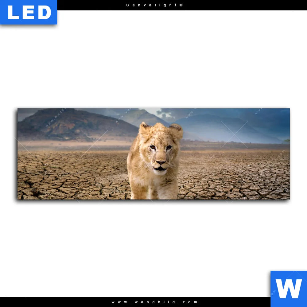 Canvalight® Leuchtbild | Spiegelbild Löwe & Löwenjunges | Panorama