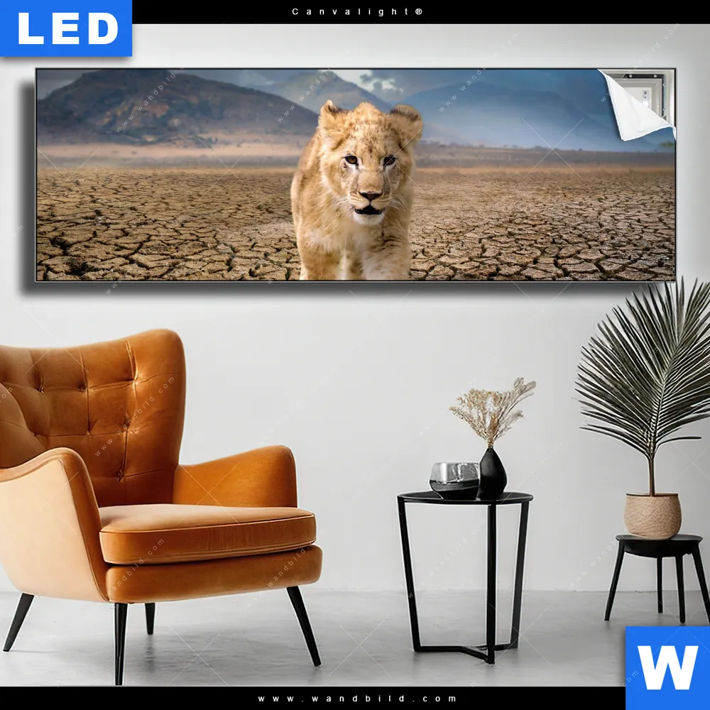 Canvalight® TEX Leuchtbild | Spiegelbild Löwe & Löwenjunges | Panorama
