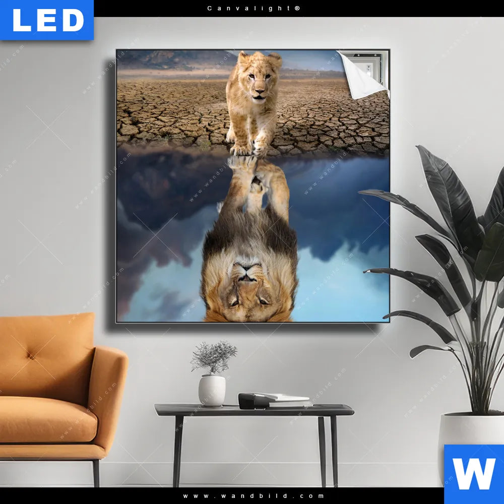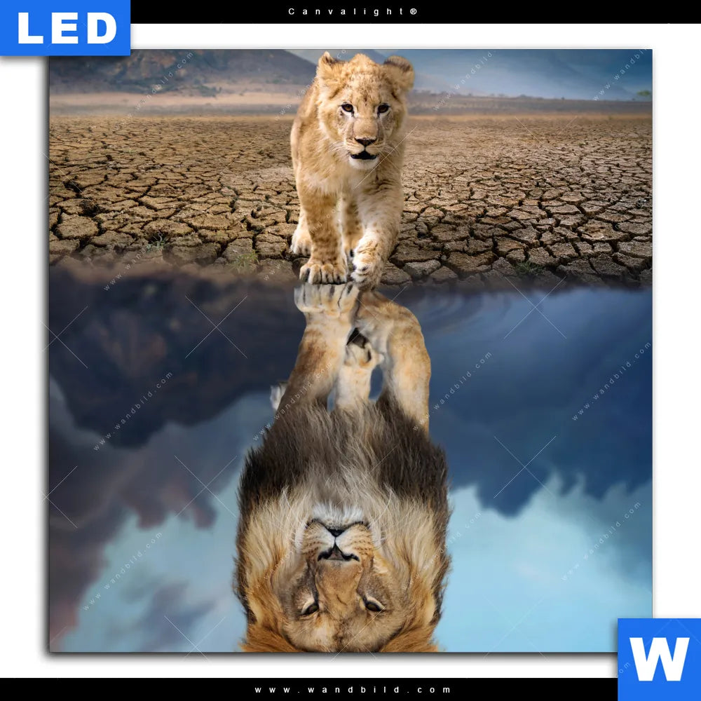Canvalight® Leuchtbild | Spiegelbild Löwe & Löwenjunges | Quadrat