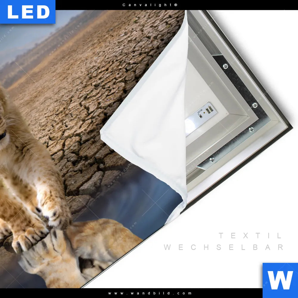 LED-Textilrahmen-Bild mit austauschbarem Tierwelt Textil-Druck (Wechselbild)