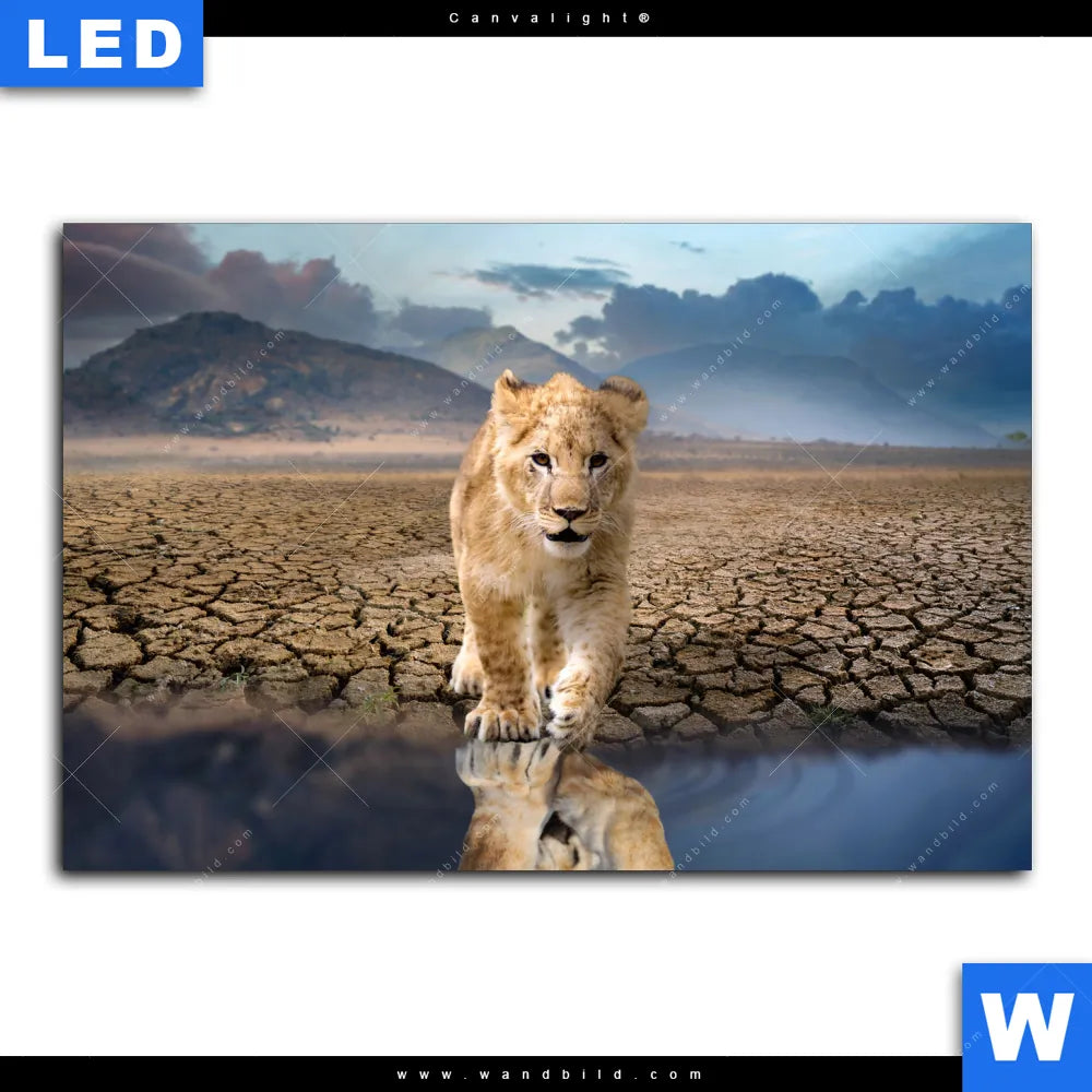Canvalight® Leuchtbild | Spiegelbild Löwe & Löwenjunges | Querformat