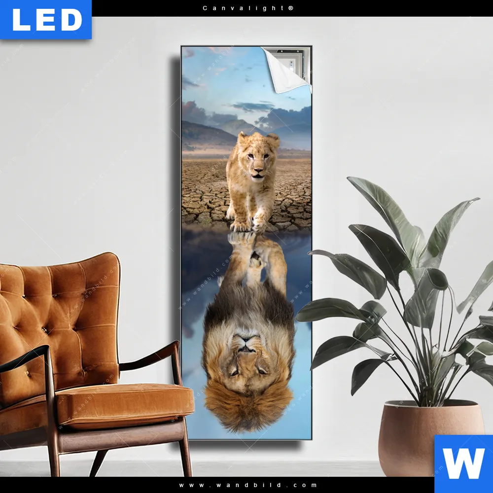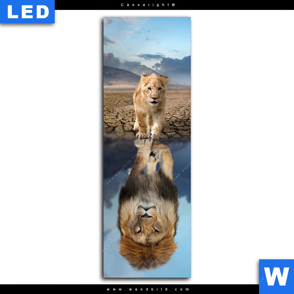 Canvalight® Leuchtbild | Spiegelbild Löwe & Löwenjunges | Schmal