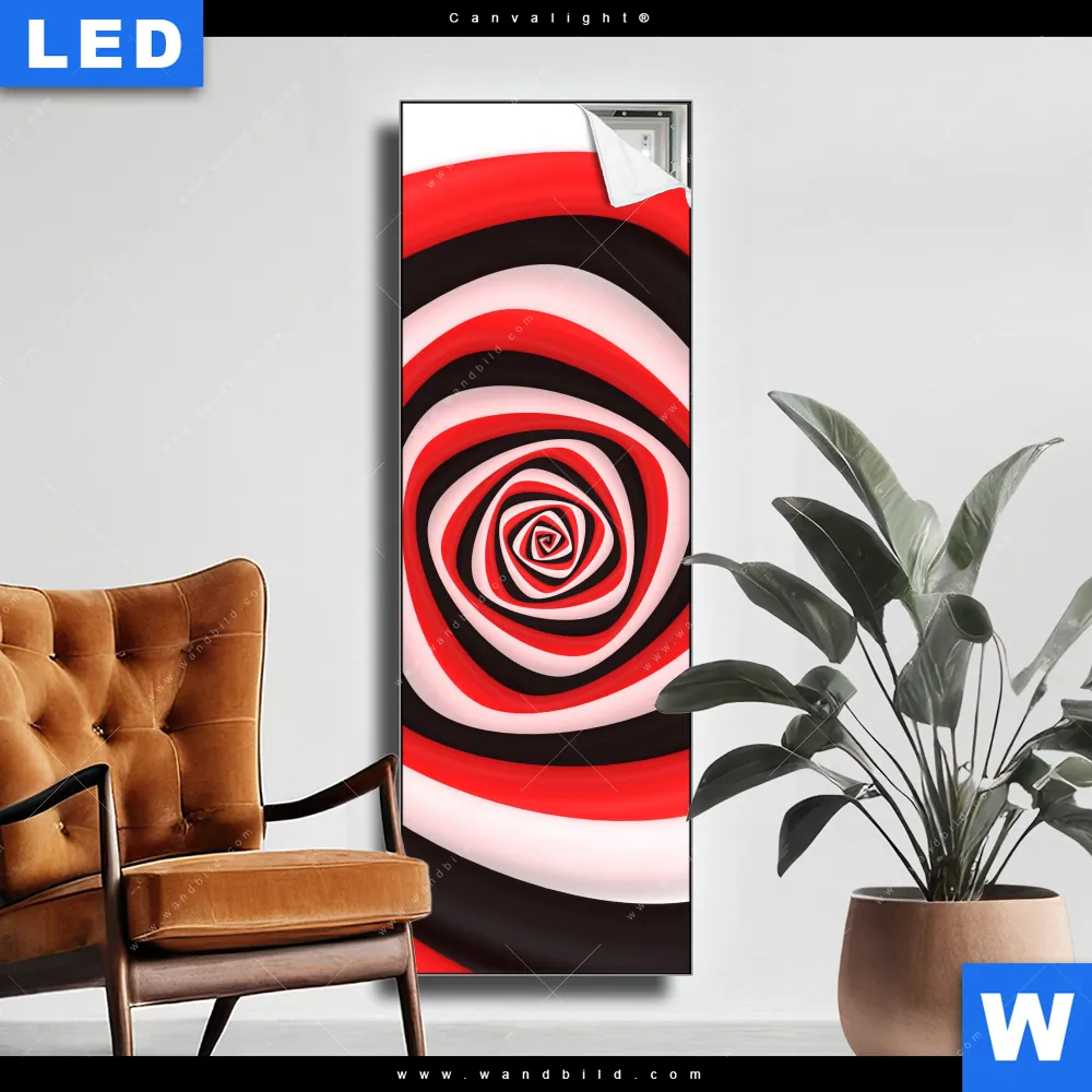 Canvalight® Leuchtbild | Spirale in rot weiß schwarz | Schmal