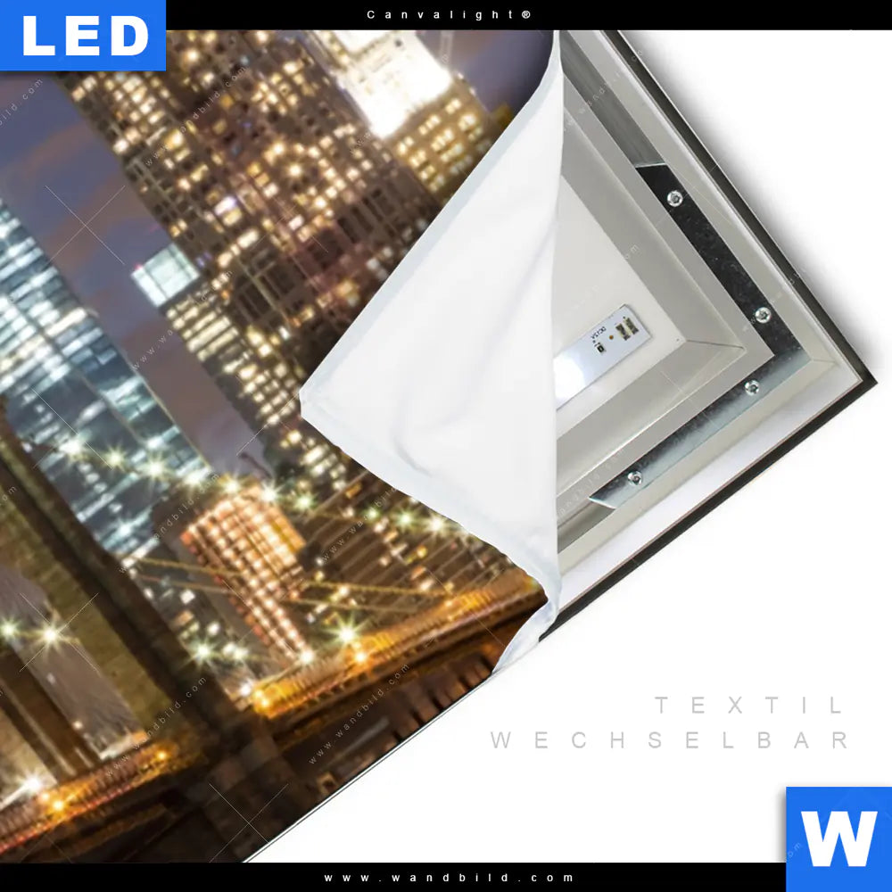 LED-Textilrahmen-Bild mit austauschbarem Städte - Skylines Textil-Druck (Wechselbild)