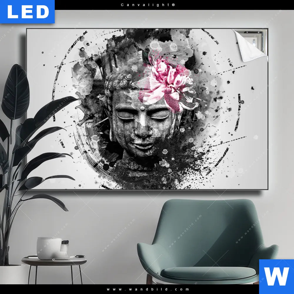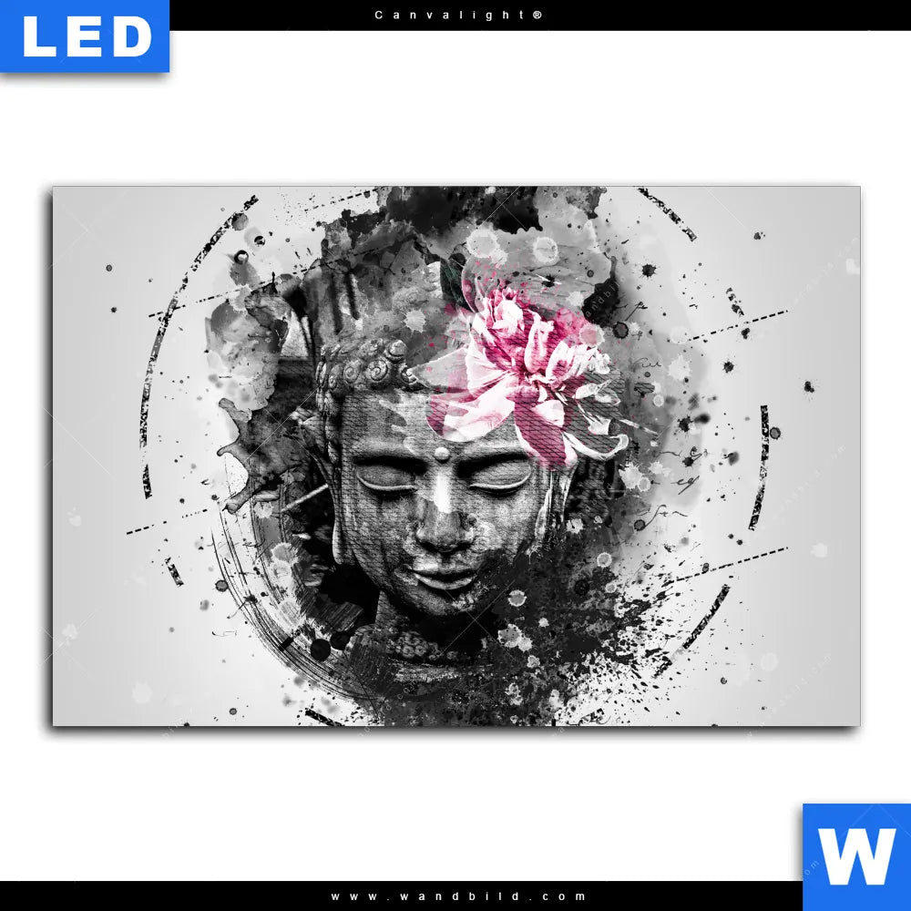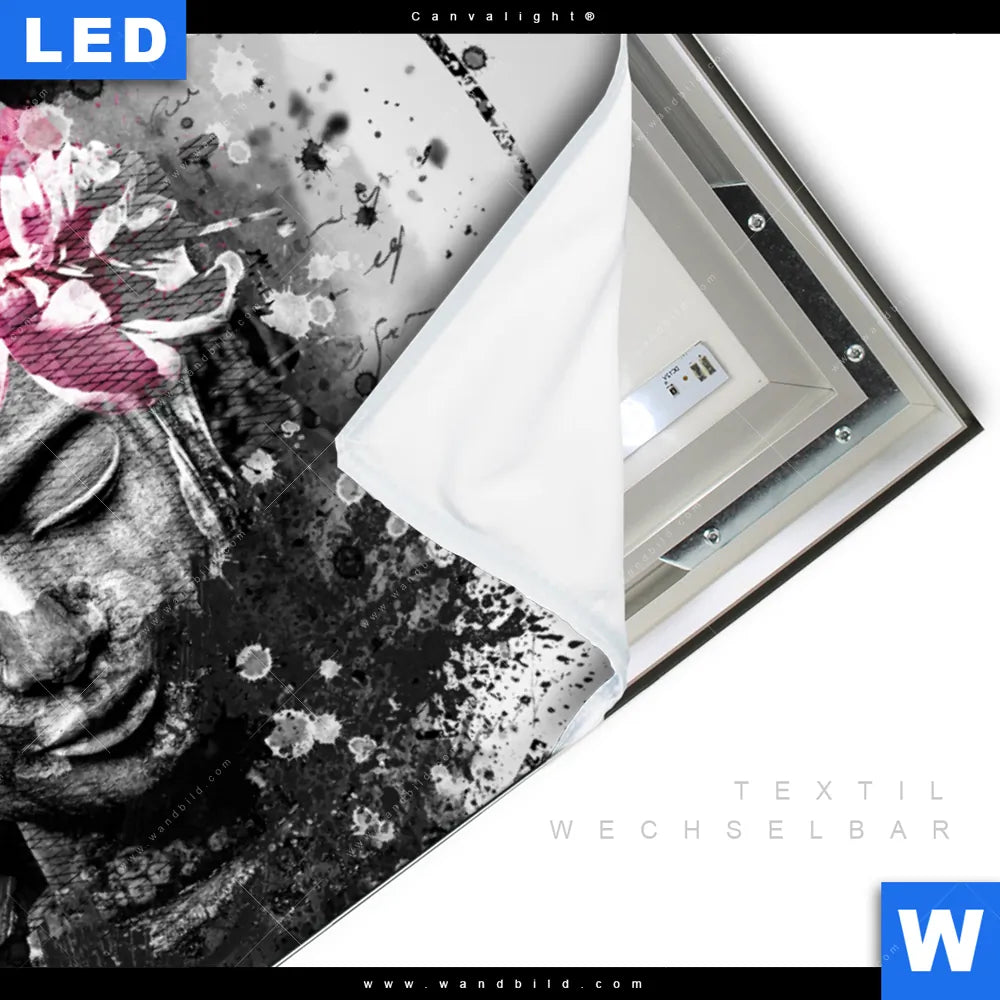 LED-Textilrahmen-Bild mit austauschbarem Buddha - Feng Shui, Blumen - Botanik Textil-Druck (Wechselbild)