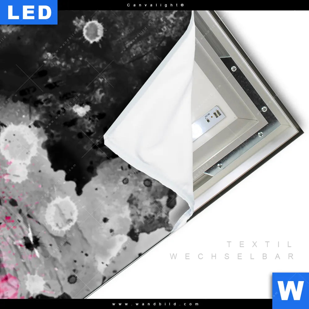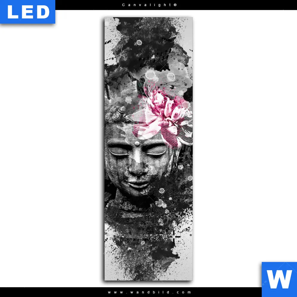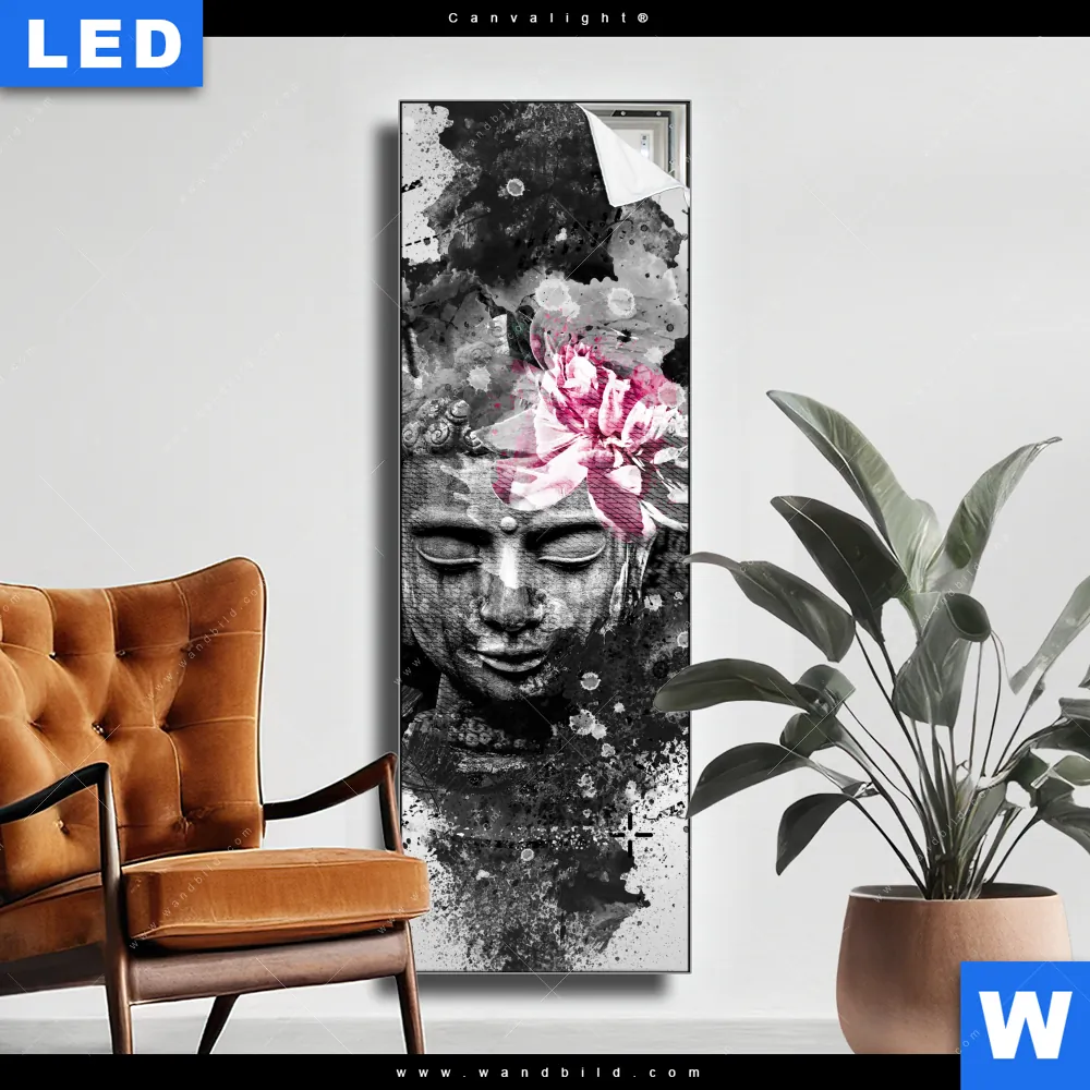 LED-Textilrahmen-Bild mit austauschbarem Buddha - Feng Shui, Blumen - Botanik Textil-Druck (Wechselbild)