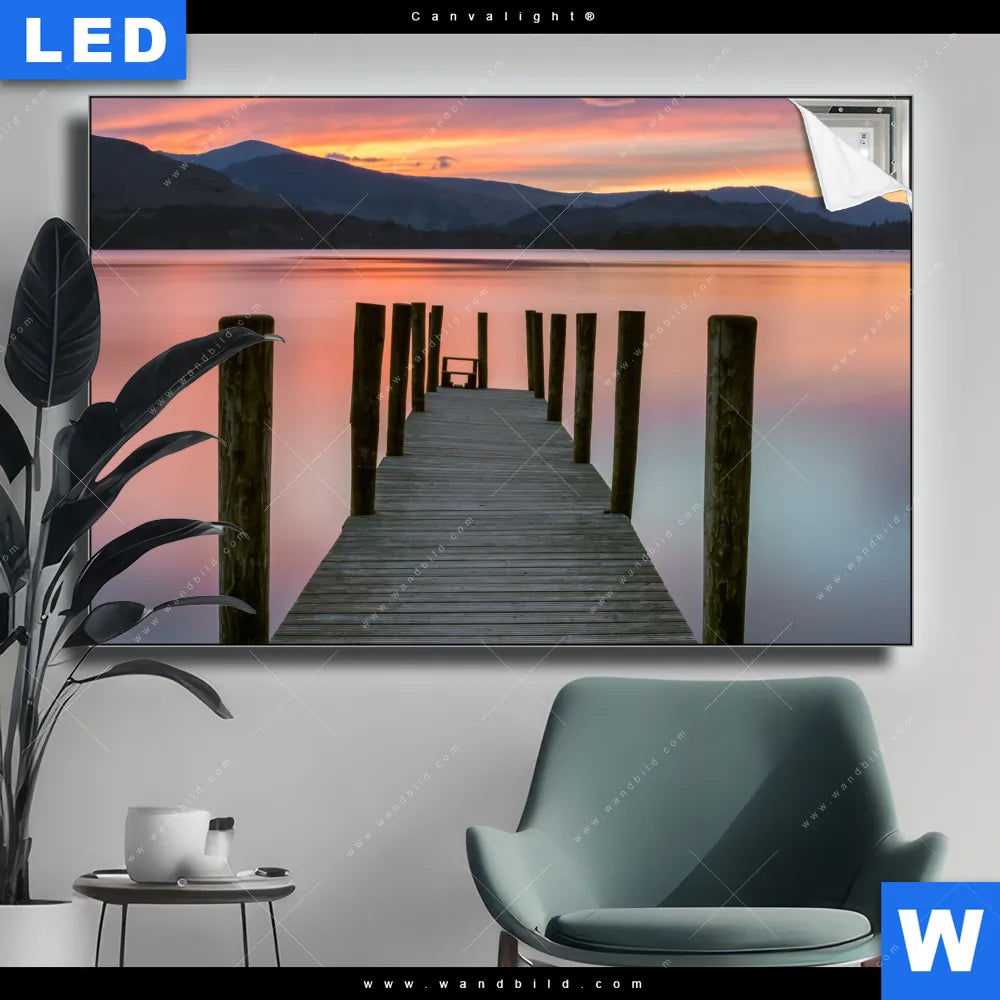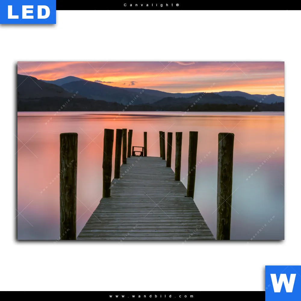 Canvalight® Leuchtbild | Steg in den Sonnenuntergang | Querformat