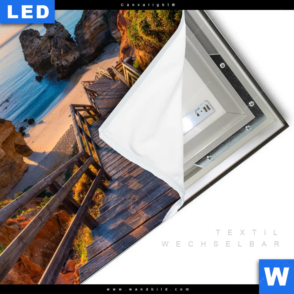 LED-Textilrahmen-Bild mit austauschbarem Landschaften, Strand - Meer Textil-Druck (Wechselbild)