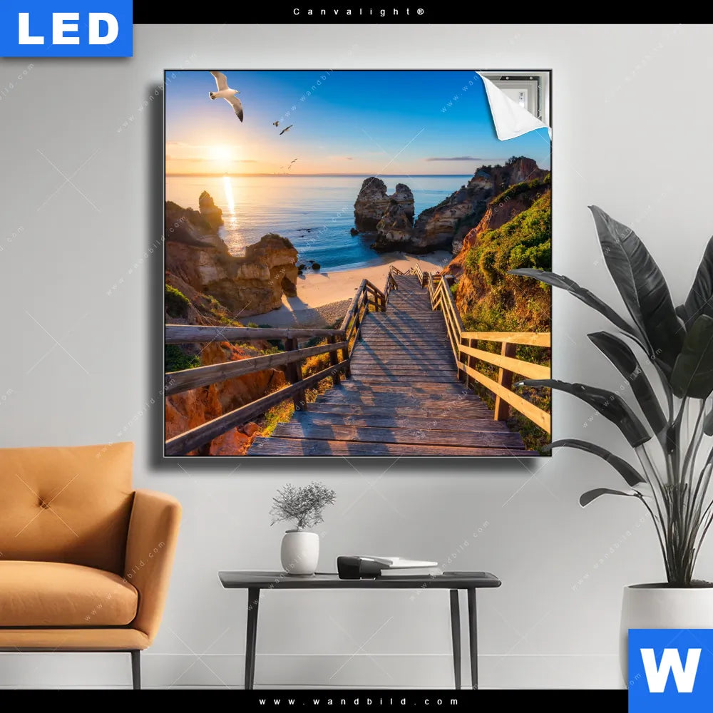 Canvalight® Leuchtbild | Steg zum Meer | Quadrat