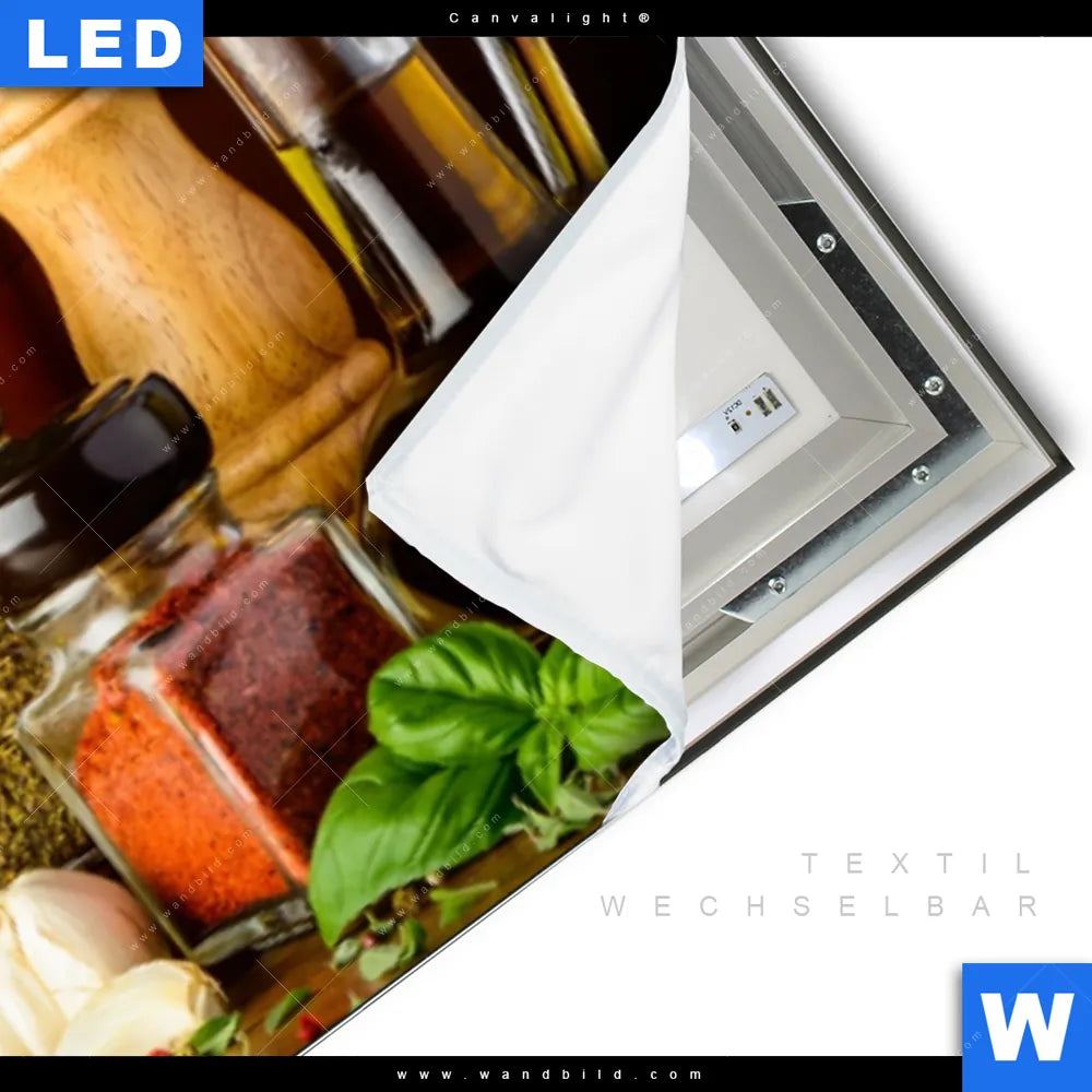 LED-Textilrahmen-Bild mit austauschbarem Essen - Trinken Textil-Druck (Wechselbild)