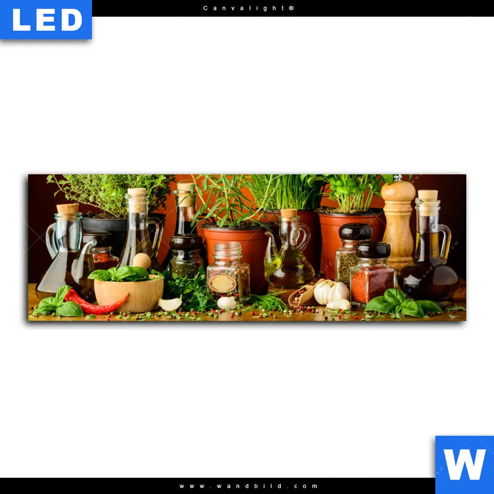 Canvalight® Leuchtbild | Stillleben mit mediterranen Kräutern | Panorama