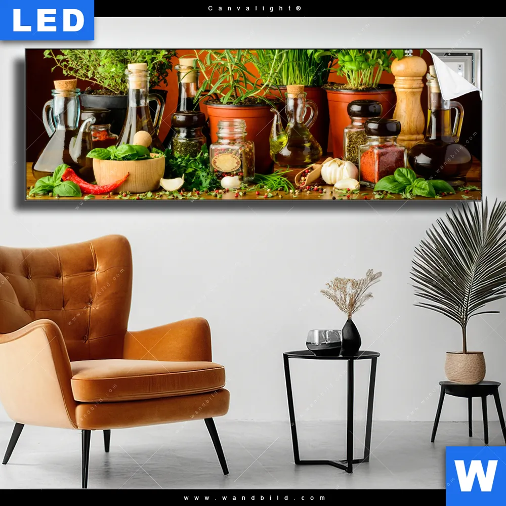 Canvalight® TEX Leuchtbild | Stillleben mit mediterranen Kräutern | Panorama