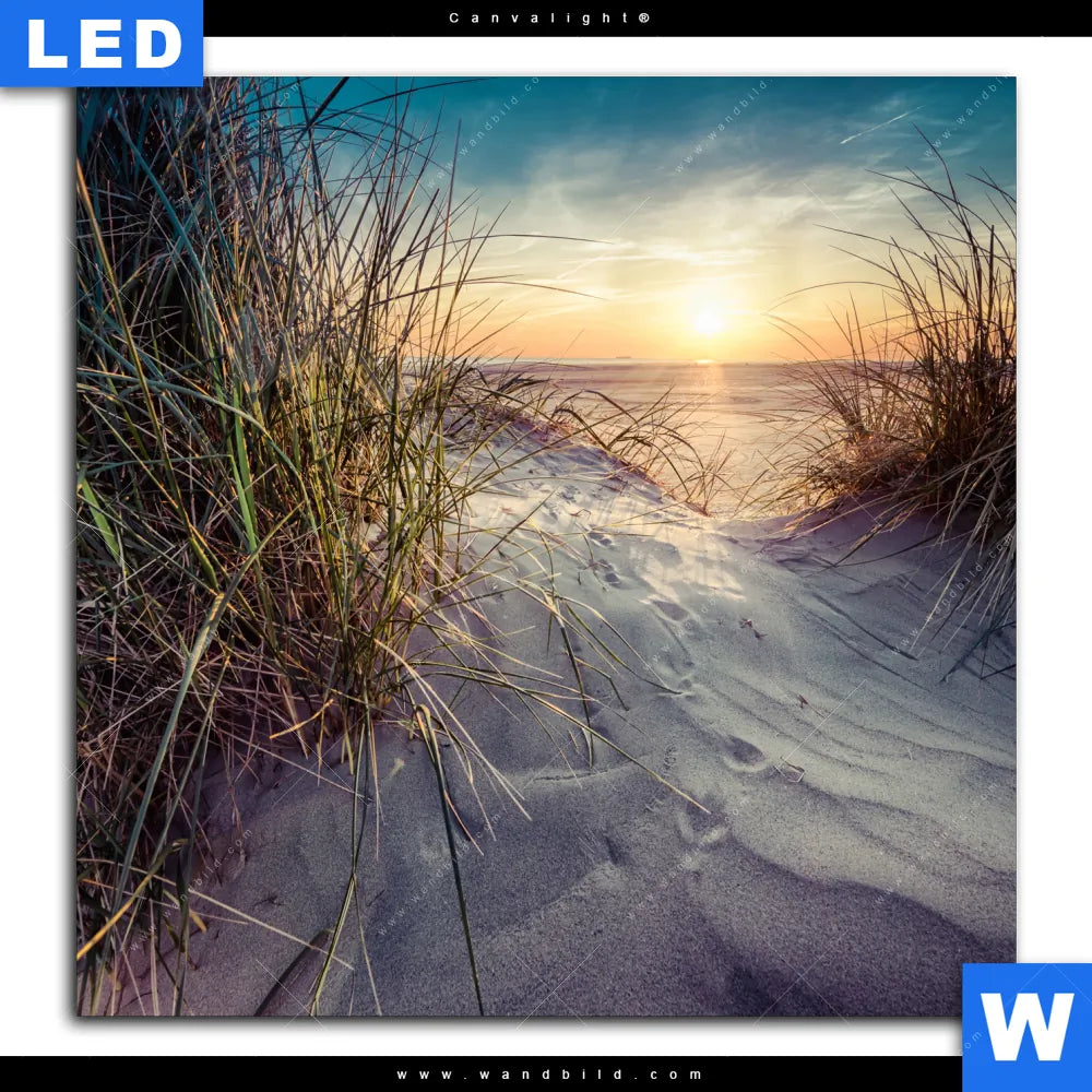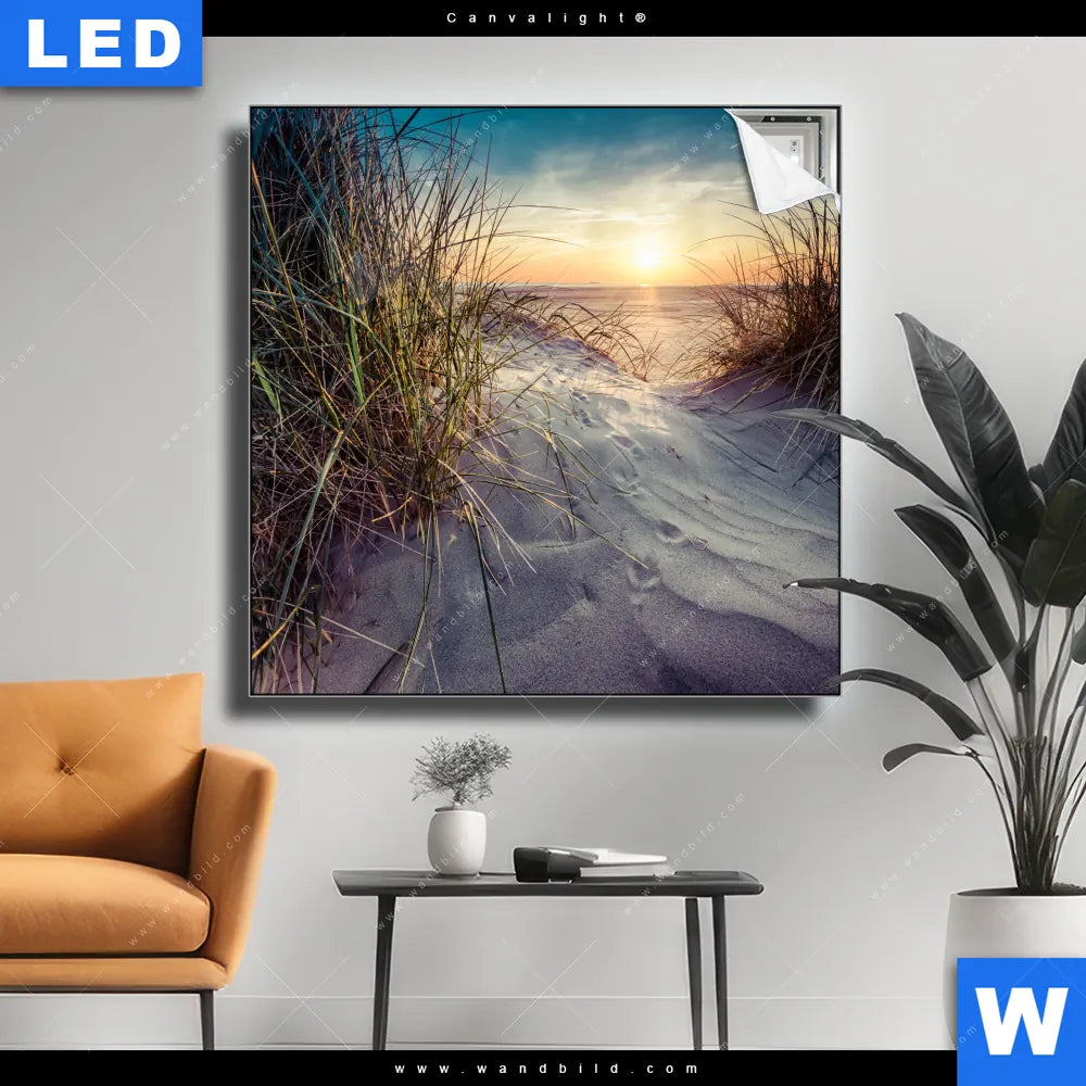 Canvalight® Leuchtbild | Strandlandschaft mit Gras | Quadrat