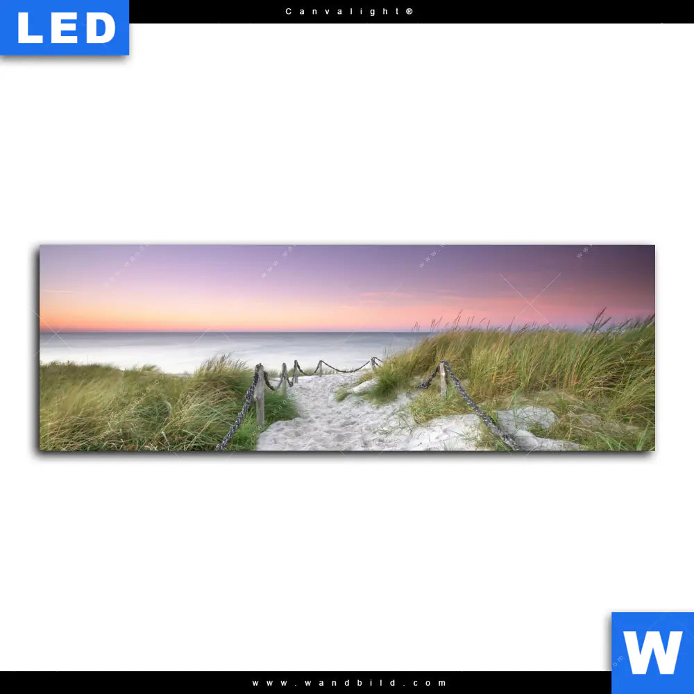 Canvalight® Leuchtbild | Strandweg im Sonnenuntergang | Panorama