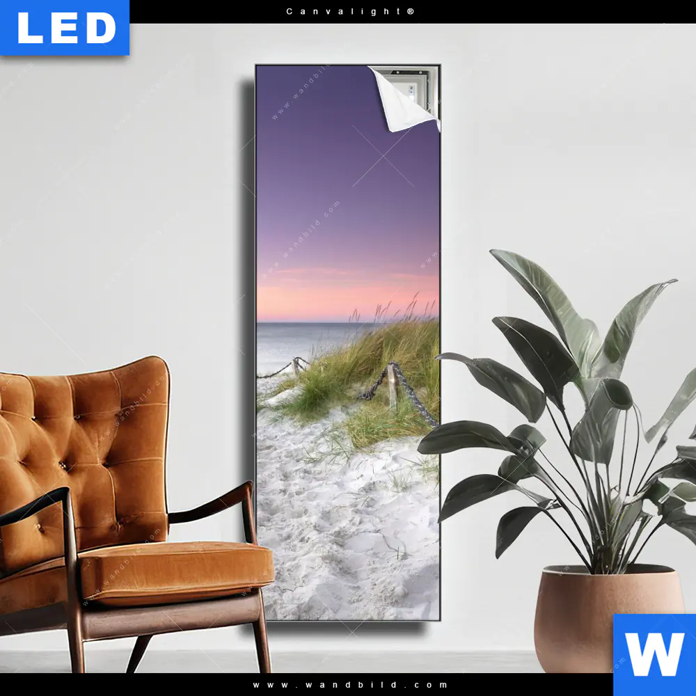 Canvalight® Leuchtbild | Strandweg im Sonnenuntergang | Schmal