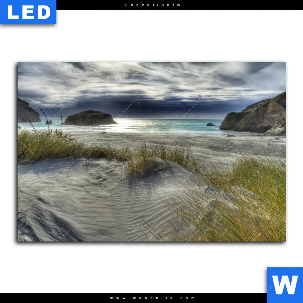 Canvalight® Leuchtbild | Stürmischer Himmel am Strand | Querformat