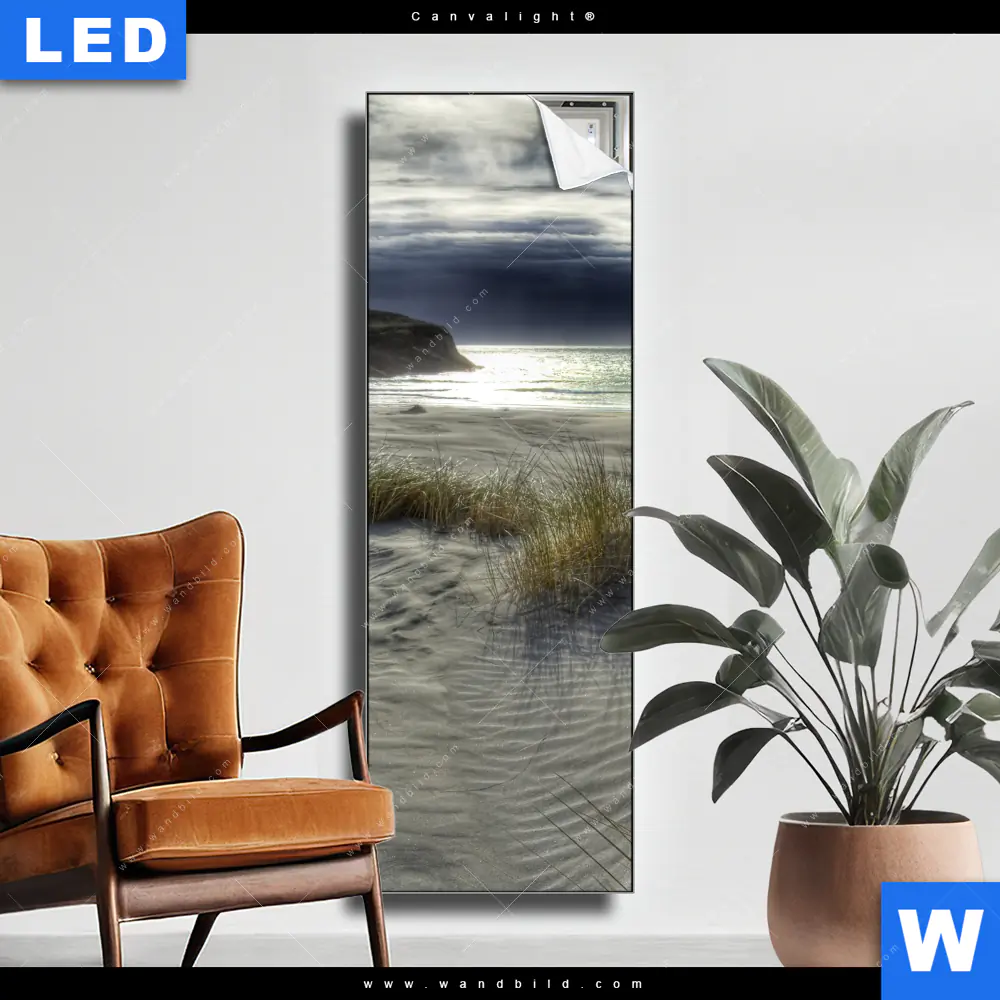 Canvalight® TEX Leuchtbild | Stürmischer Himmel am Strand | Schmal