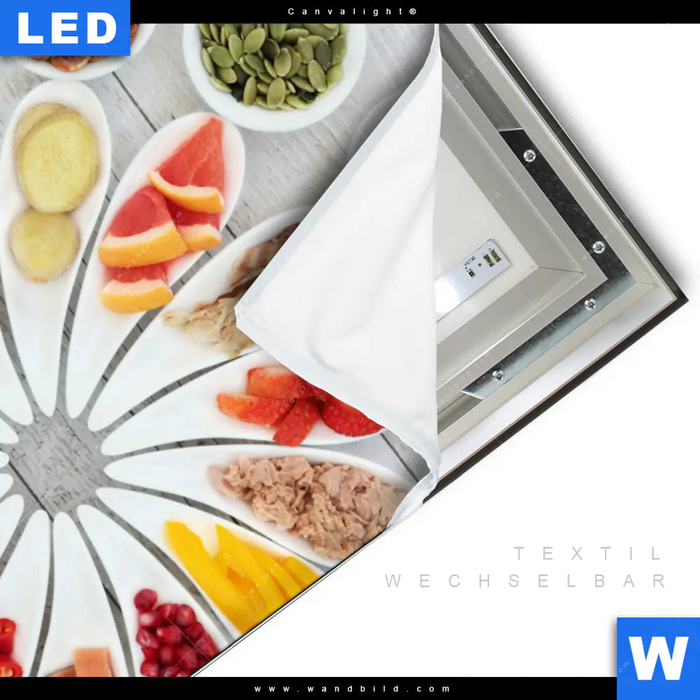 LED-Textilrahmen-Bild mit austauschbarem Essen - Trinken Textil-Druck (Wechselbild)