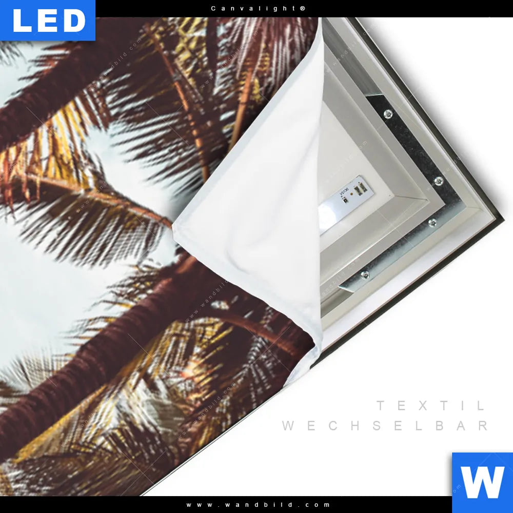 LED-Textilrahmen-Bild mit austauschbarem Strand - Meer Textil-Druck (Wechselbild)