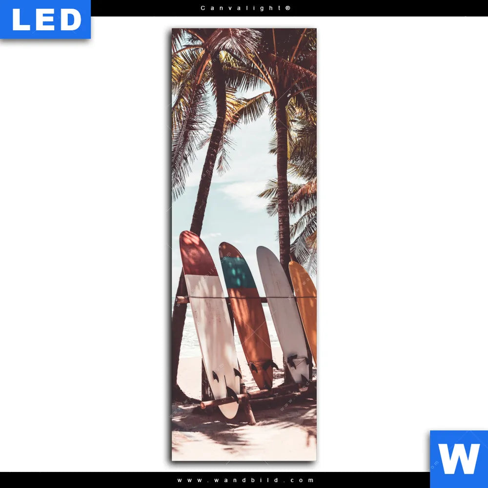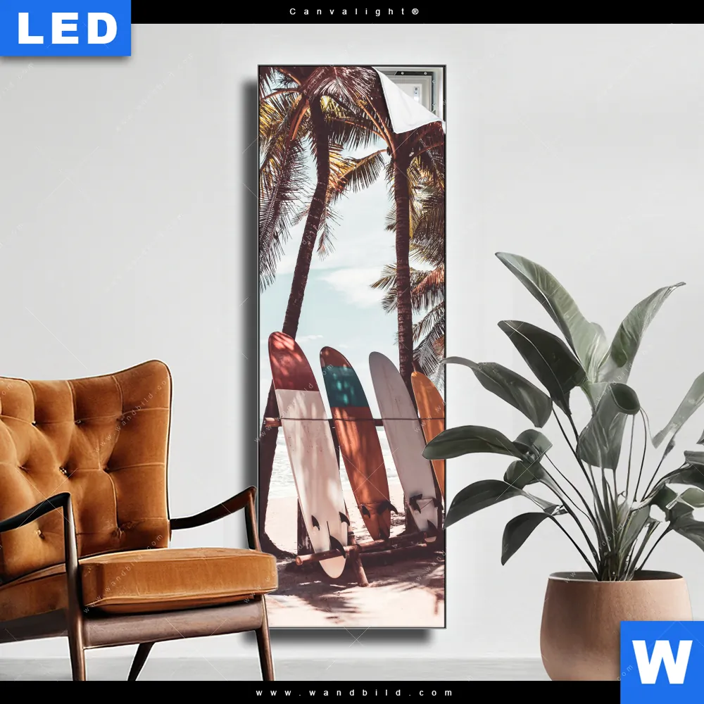 Canvalight® Leuchtbild | Surfbretter und Palmen | Schmal