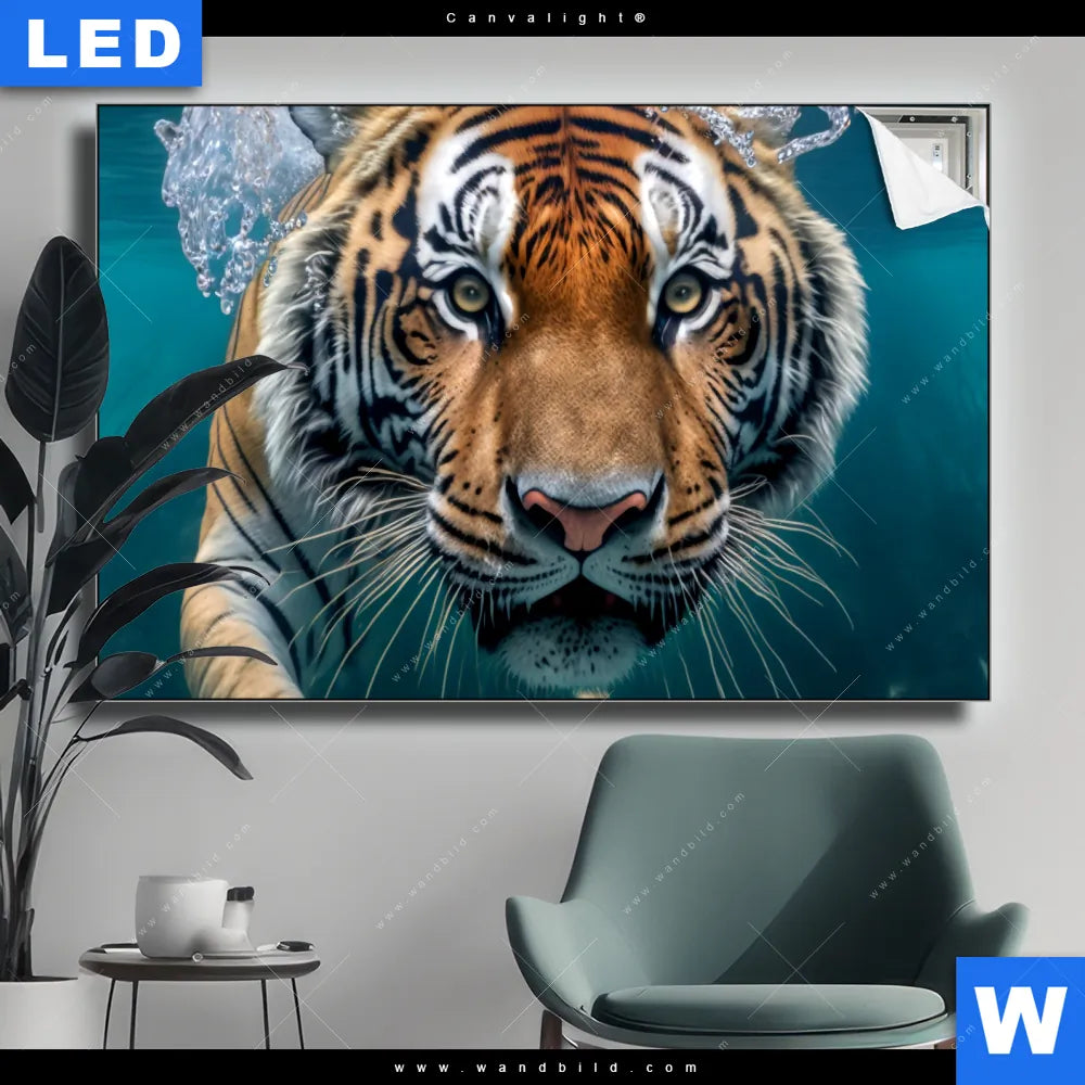 Canvalight® Leuchtbild | Tauchender Tiger | Querformat