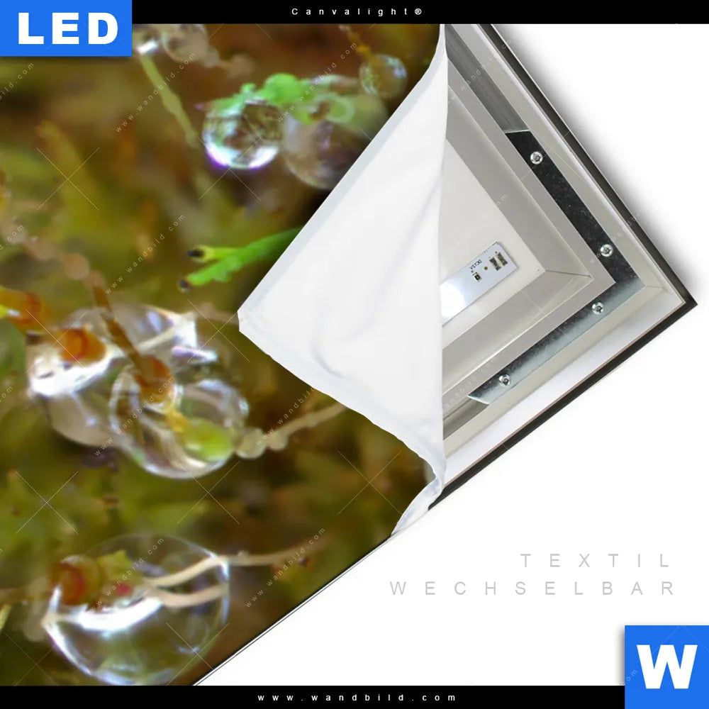 Canvalight® TEX Leuchtbild | Tautropfen auf Moos | Panorama
