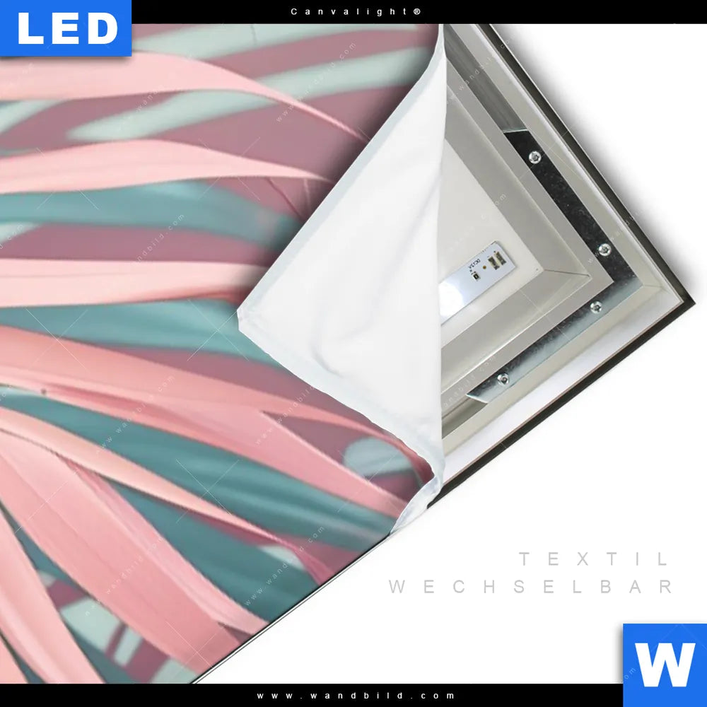 Canvalight® TEX Leuchtbild | Tropische Blätter in Pastellfarben | Panorama
