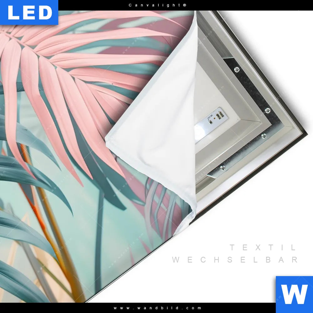 Canvalight® TEX Leuchtbild | Tropische Blätter in Pastellfarben | Querformat