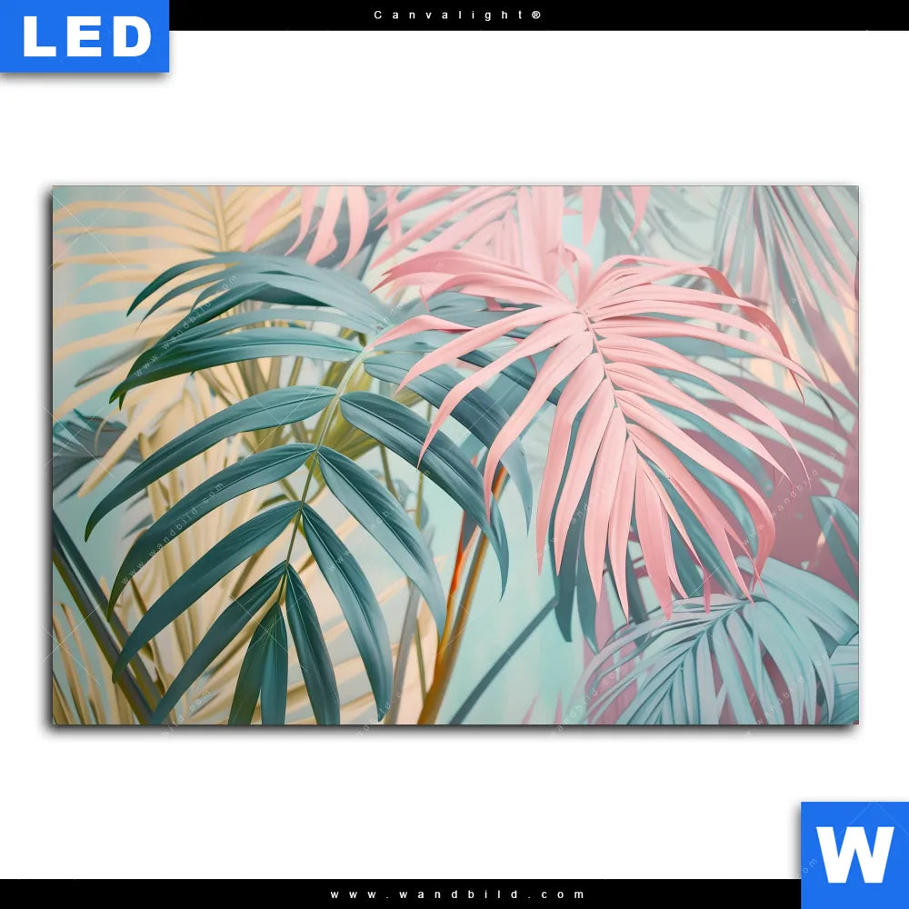 Canvalight® Leuchtbild | Tropische Blätter in Pastellfarben | Querformat