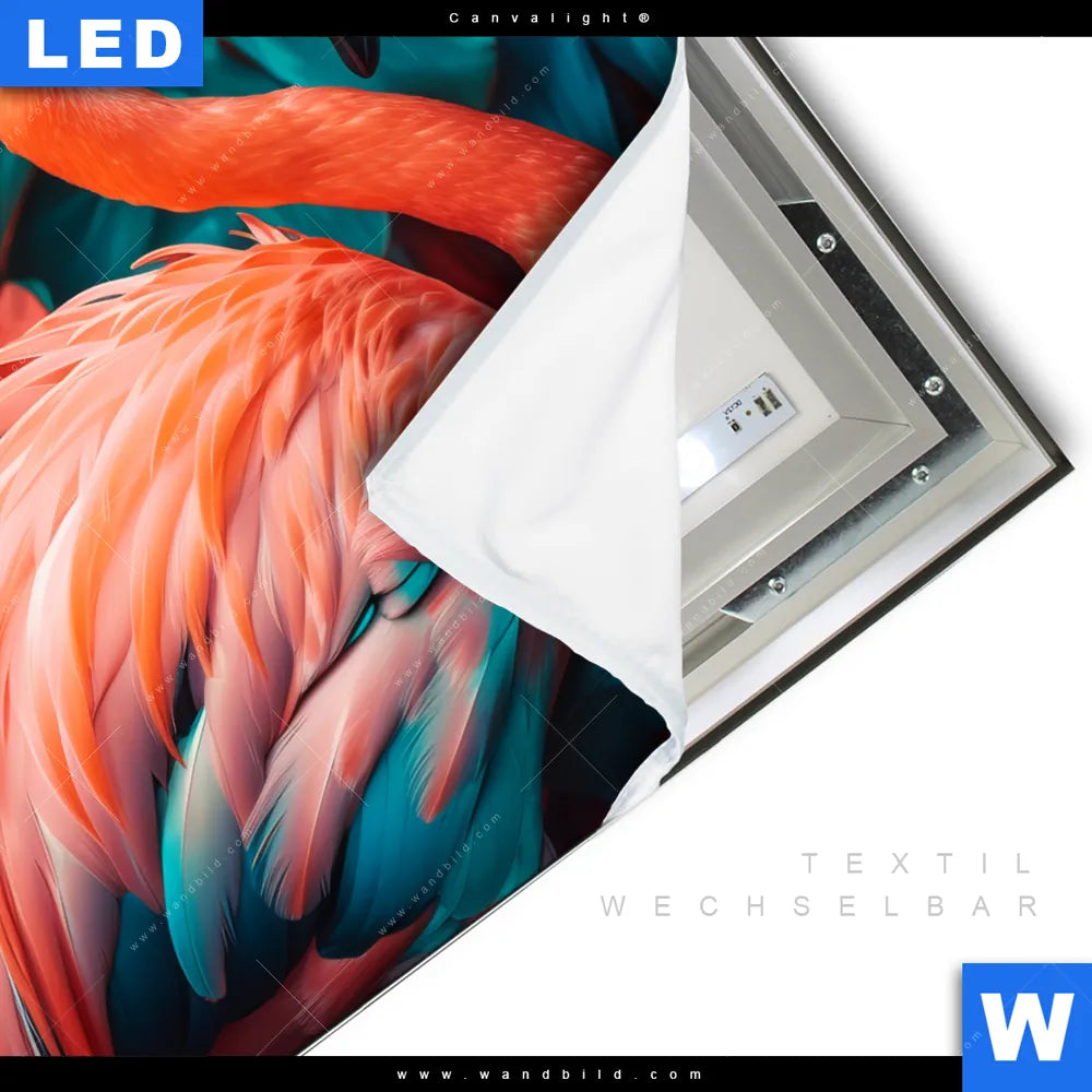 Canvalight® TEX Leuchtbild | Tropischer Flamingo Traum | Quadrat