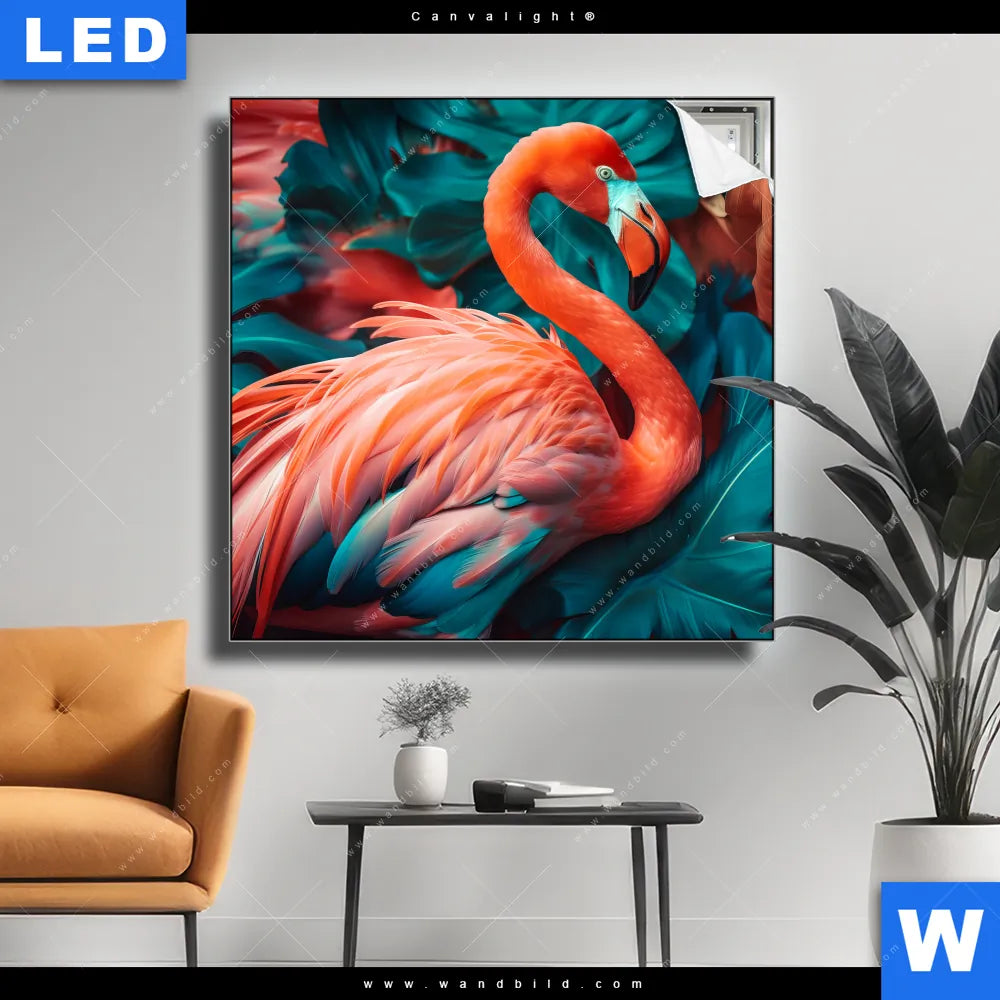 Canvalight® Leuchtbild | Tropischer Flamingo Traum | Quadrat