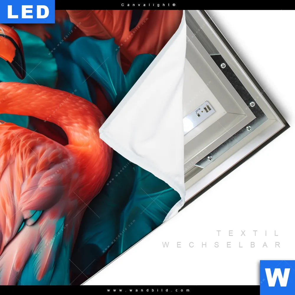 Canvalight® TEX Leuchtbild | Tropischer Flamingo Traum | Querformat