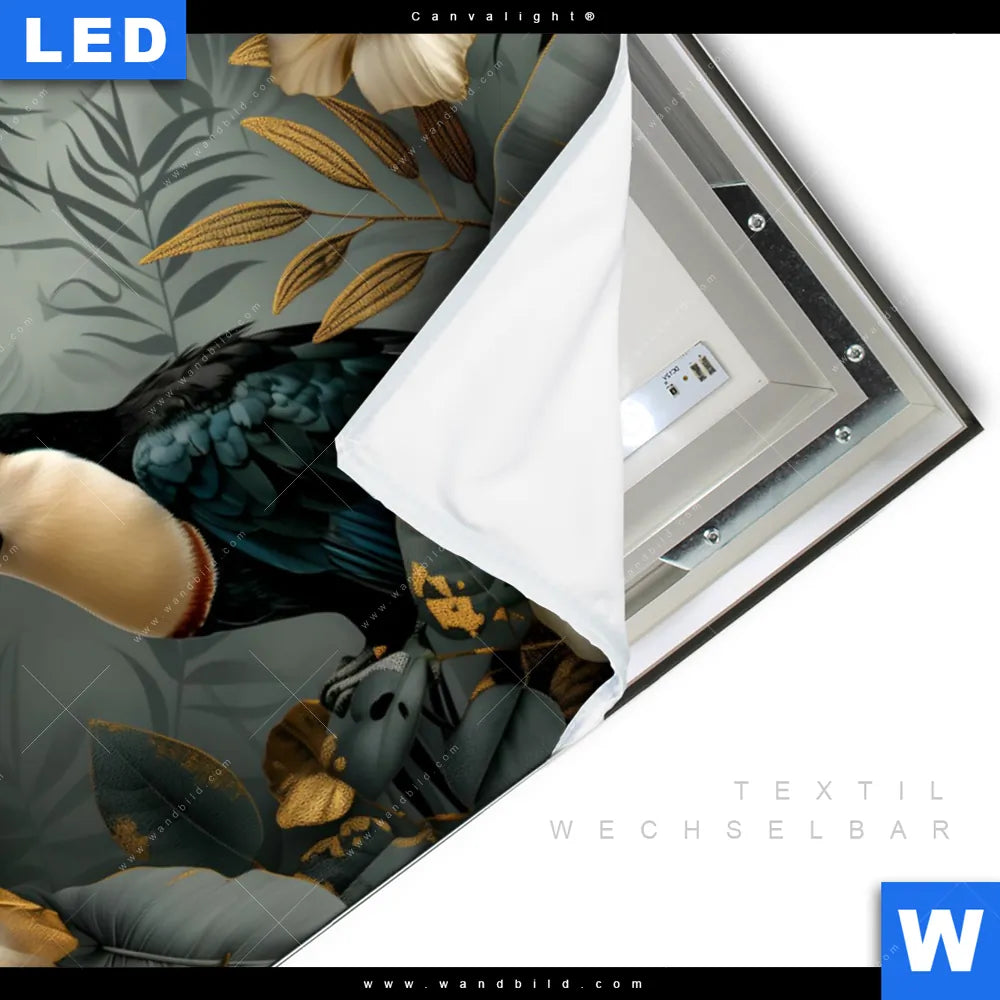 Canvalight® TEX Leuchtbild | Tukan im goldenen Regenwald | Querformat
