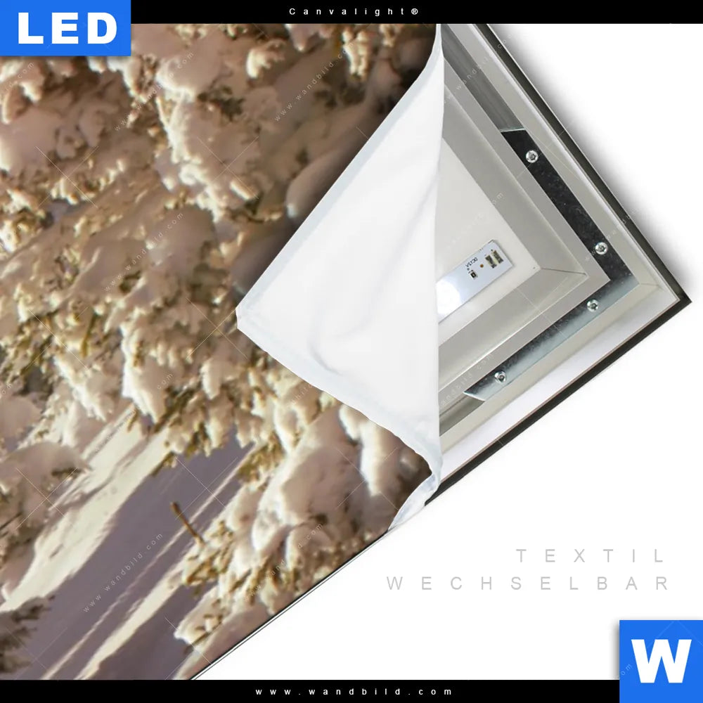 LED-Textilrahmen-Bild mit austauschbarem Landschaften, Winter, Wald - Bäume Textil-Druck (Wechselbild)